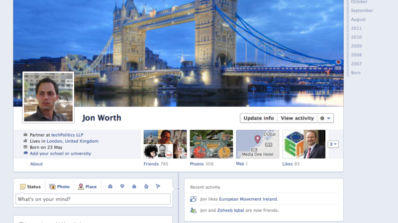 OK, this ‘Cover’ image is just an image. But for the first time ever as a user of Facebook you have the ability to create a real visual identity for your profile, and whatever you think of the concept of the timeline, the visual design is neat.