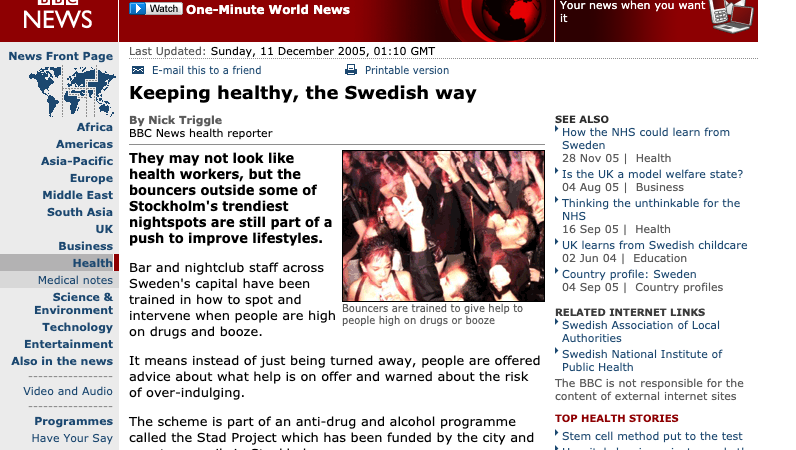 Continuing their series about Sweden, BBC News Online has published a new article about Swedish public health. Read it here. This article is more detailed than the other ones they have posted on the website. It looks in depth about how the decentralised nature of Swedish healthcare might be better than the centralised NHS. There is also a pop-up window with some excellent stats about the health of the British and Swedish populations.