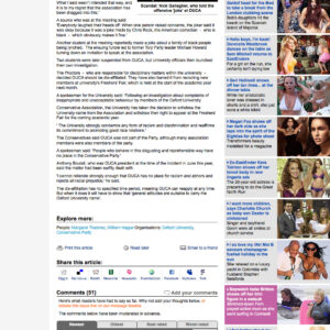 Via Twitter my attention was drawn to this article in the Daily Mail about Tory toffs in OUCA behaving like racist idiots. Tell me what’s new, although this does seem more extreme than normal… But look at the sidebar of the Daily Mail website. Almost every picture is of some...