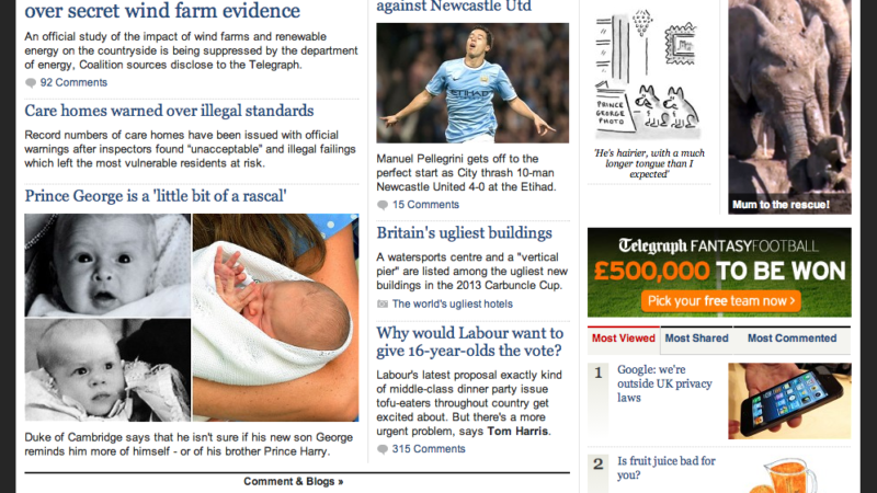 Story is middle, centre, in amongst celebrity gossip. Note the framing of the headline.Screen Shot 2013-08-20 at 00.35.36