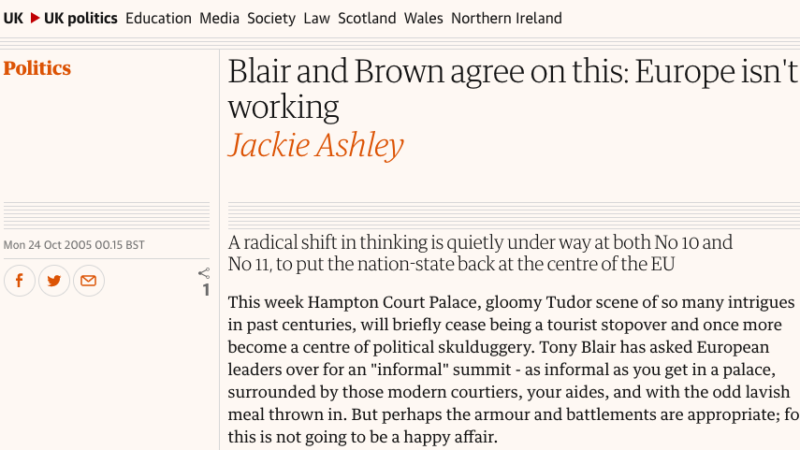 Just a day after Hutton, Jackie Ashley has written a further alarming piece in The Guardian about how EU questions are dividing Labour more and more. Her quotes from a forthcoming publication by Europe Minister Douglas Alexander are quite scary, going on about how cooperation among European countries on labour market reform is never going to be viable. Does Alexander not realise that if all of Europe continues to falter, it will have a negative impact on the UK too? We are all interdependent – economically and politically – in this EU, and I wish more UK government ministers would get to grips with that.
