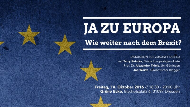 Am Freitag den 14. Oktober 1830-2000 bin ich Referent auf eine Podiumsdiskussion der Grünen in Dresden zum Thema Brexit und der Zukunft Europas. Die anderen Referenten sind Terry Reintke MdEP (Website, Twitter) und Prof. Alexander Thiele (Website).
