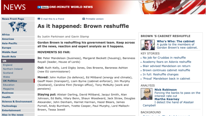 Shock news: Peter Mandelson is back in ther UK Cabinet today in Gordon Brown’s reshuffle. So he’ll be resigning as a member of the European Commission. Geoff Hoon is to be Transport Secretary. So who will go to Brussels as European Commissioner? Patricia Hewitt is my bet, as I’ve previously speculated. Hewitt has a majority of 9,070 in Leicester West. Could Labour hold on in a by-election?