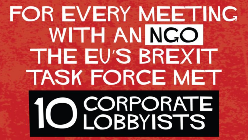 This is an extract from a report by Corporate Europe Observatory and Global Justice Now that examines how many meetings lobbyists have held with DExEU in the UK and with Barnier’s Brexit task force. The summary of the report is here, and the full PDF here.