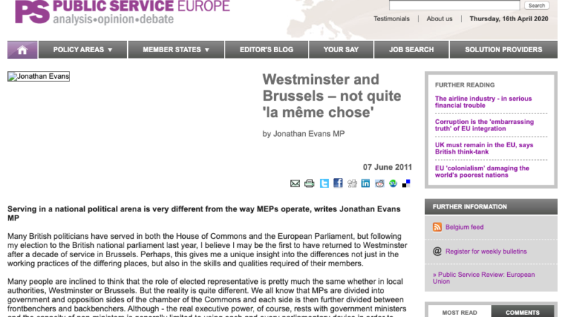OK, he’s a MP rather than a MEP now, but a piece by Jonathan Evans for Public Service Europe annoys me. There are some valid points in the piece on the way the EP and Westminster work, but this is the frustrating bit:
