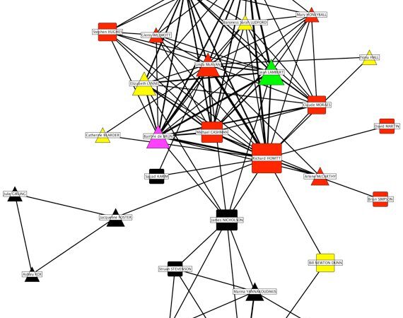 The picture Jon has chosen is already the reduced network where I’ve only kept links that represent a minimum of 2 joint groups. You can see the full network here.