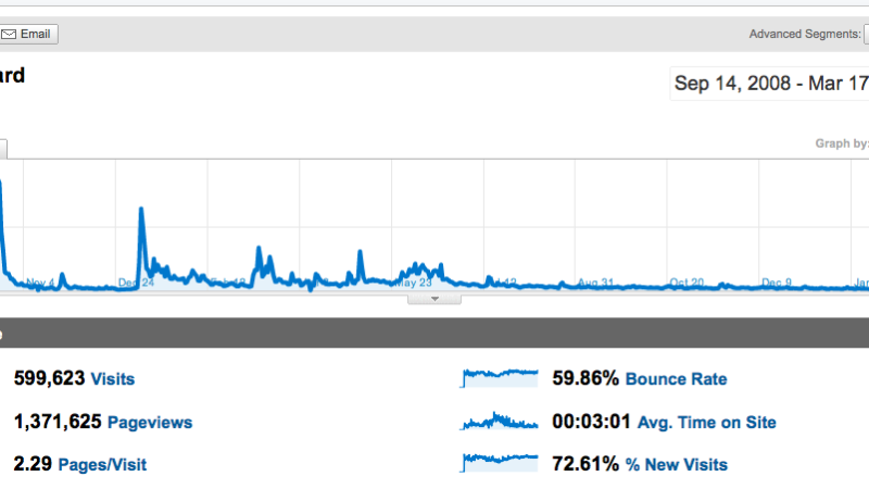 Because (and sorry to return to it) the Atheist Bus Campaign managed to use basically only Facebook, Twitter and blogs for the entire transmission of its message, and that resulted in online donations of £153,523.51, with more than 9000 donors. OK, over the months the website has clocked up almost 600k individual visitors (see Google Analytics below), with 24k in the Facebook group and 3k followers on Twitter – that’s not a fantastic conversion rate into donations – but it’s for sure a social media generated fundraising effort.