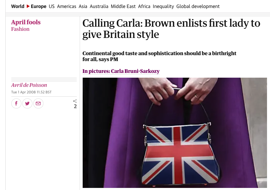 Have a read of this brilliant article in today’s Guardian about a new cultural initiative involving Gordon Brown and Carla Bruni. I sort of wish Brown would do something so daring… Pity it’s not on the Number 10 website. I