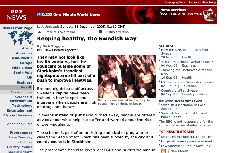 Continuing their series about Sweden, BBC News Online has published a new article about Swedish public health. Read it here. This article is more detailed than the other ones they have posted on the website. It looks in depth about