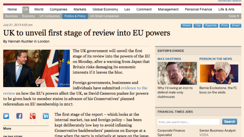 So then, which of these many tools picked up today’s major UK-EU news? That would be that an announcement is expected this afternoon about the UK’s EU competence review (screenshot above). That came from… the FT. It’s an interesting case, as no mention whatsoever is made of this issue at GOV.uk, nor indeed on the website of the competence review, nor on the day’s House of Lords order of business. To know it will even happen and to report on it needed typical, traditional, journalist networking. So much for online first, and the power of the internet, eh? But at least my monitoring system found it.