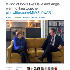 So embattled Swedish PM Reinfeldt invited Merkel, Cameron and Rutte to Harpsund and took them out in a small rowing boat (news summary here), and let photographers take pictures of this. Here’s the original: The Junckermonster – my own effort Putin, via @GeneralBoles Breaking apart, via @Spacexecadet Sinking, via @JOR_ID Just...