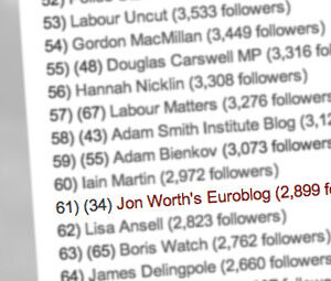 A Very Public Sociologist has completed a second annual survey of the number of Twitter followers of people who also write political blogs in the UK. I finished up 34th on this list last year, now I’m down to 61st. Other people who blog alongside their main non-media day job...