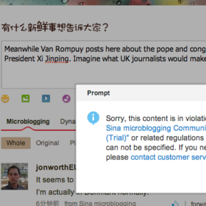 Alexander Stubb is there. Herman Van Rompuy is there. So I thought I’d have a go at using the Chinese social network Sina Weibo (Wikipedia | Website). The first headache is trying to work out how to sign up. I speak no mandarin at all. So Google Chrome with built...