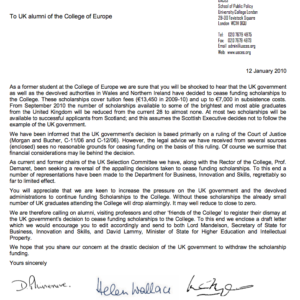 It’s good to see that the story that the UK government is cutting funding for the College of Europe is starting to be seen more widely – today’s FT has a story entitled “Funding cut for places at Eurocrat college“. I first wrote about the issue on Friday last week...
