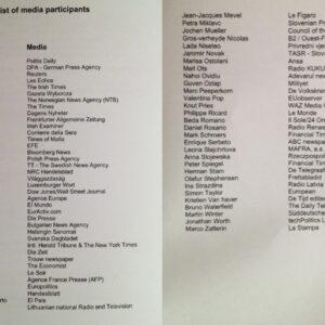 One of my questions before arriving in Copenhagen was: who are the others who are attending the Danish Presidency press trip? Now I have the answer – albeit only on paper. This is a picture of the pages from the programme (click to enlarge) I’m glad to see Bruno Waterfield...