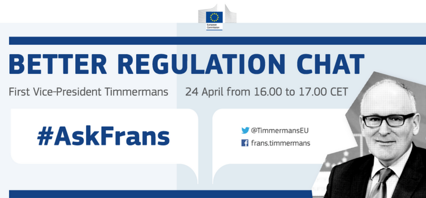 At 1600 CET today, First Vice President of the European Commission Frans Timmermans will do an online chat on Twitter and Facebook* – tag is #AskFrans. Transport Commissioner Violeta Bulc will do the same on Monday 27th April at 1400