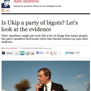 Alex Andreou has had a go at UKIP on the New Statesman website. It’s a detailed, but relatively standard, attempt to critique the party – that they have no coherent, let alone costed, policies, and that many of the people in the party or associated with the party are either...