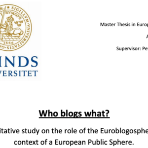 I was one of the people interviewed for Javier Ruiz Soler‘s European Studies Masters Thesis “Who blogs what? A qualitative study on the role of the Euroblogosphere in a context of a European Public Sphere.” The PDF of the thesis is here (Javier has given the interviewed bloggers permission to...
