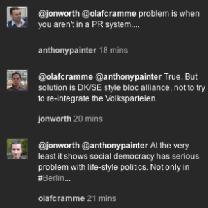 A Twitter exchange this afternoon with @olafcramme and @anthonypainter (shown in the screenshot to the right) in light of both Thursday’s election in Denmark and today’s Berlin state election got me thinking: is Nordic bloc politics the solution to the fracturing of the left, the problem so compellingly highlighted by...