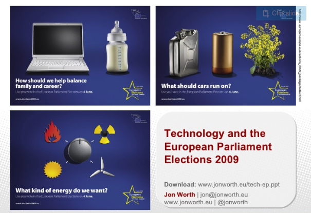 Bente and I have just given a presentation at the Norwegian Mission to the EU about the use of technology for politics. The slides we used are below, and here are a few links to some other things we mentioned – there are more in the slides: