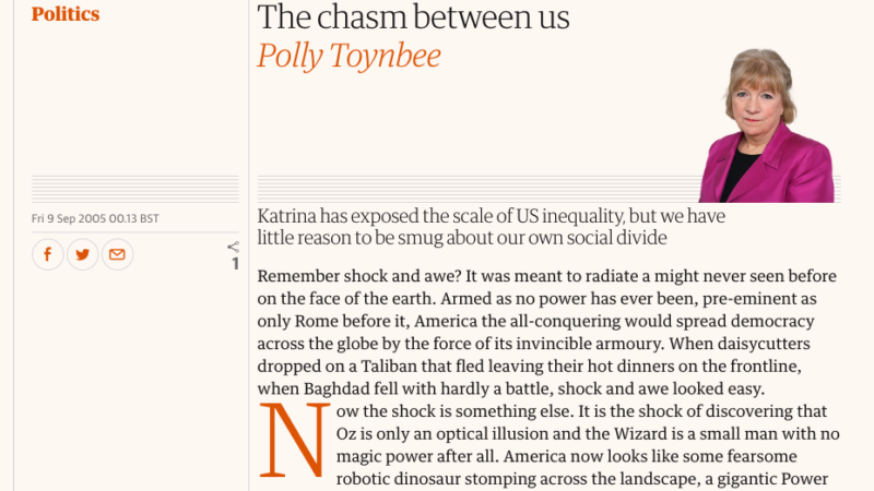 In a column in today’s Guardian by Polly Toynbee, on what would happen if a natural disaster hit the UK: