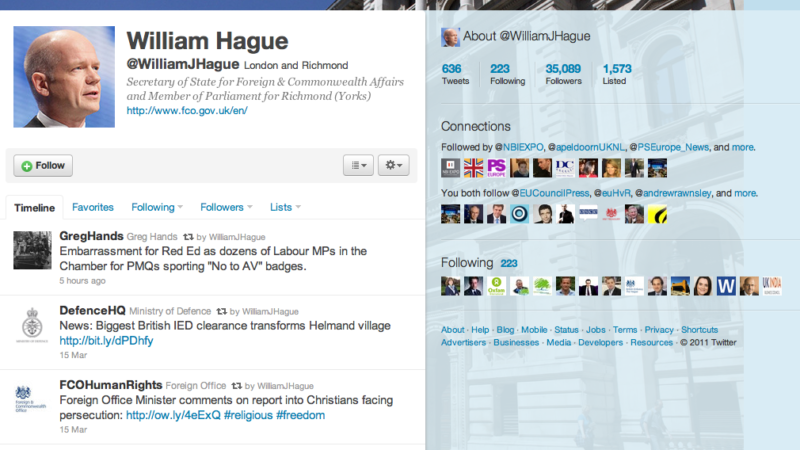 I’m sorry John, but I reckon there’s something almost anti-political about chasing down minor ways that public resources are used for political benefit (and I’m not really sure if Hague or the Tories get much benefit from indulging in minor bits of political snook-cocking on Twitter anyway). And this is a VERY minor infraction indeed.